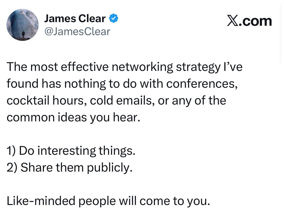 People are drawn to momentum. They remember people who are working on cool stuff, and, over time, this creates something far more powerful than a resume: a reputation and network that you can rely on for decades.