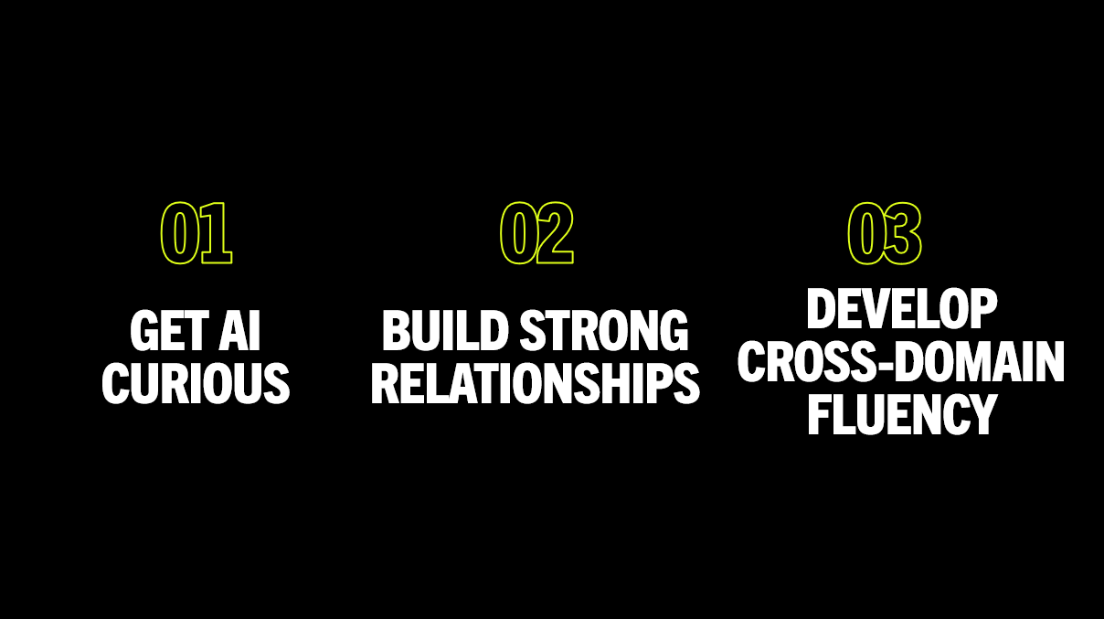 Cross-domain fluency makes you harder to replace because AI struggles with context-switching across incentives.